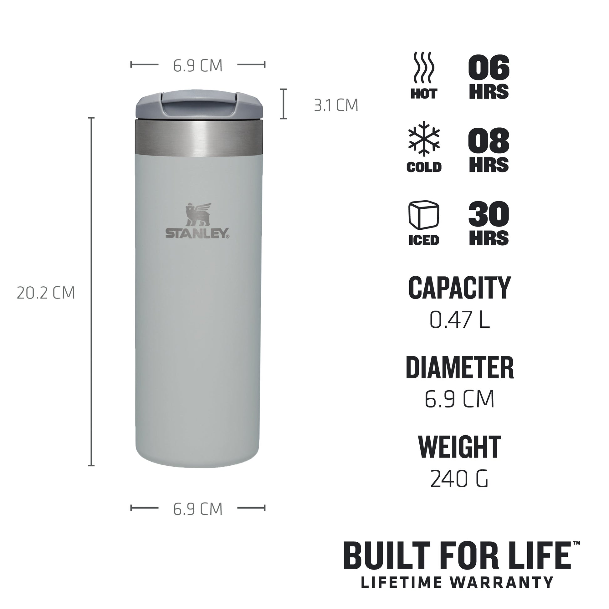 The product to support your commute and on-the-go lifestyle. As a part of our Transit collection, the AeroLight™ Transit Mug is designed to be lightweight without compromising your desired liquid temperature. Keeping your drinks hot for 6 hours, or cold for 8 hours. If you are on a morning commute or an evening hike this product has you covered whatever the weather. The Bottle is also Leakproof, with a locking, drink-through lid. This means you do not have to worry about spills as you throw your bottle in your bag and jump on your commuter train or begin your exercise. In addition, the AeroLight™ is dishwasher safe and BPA free, designed for easy cleaning. Our commuter-friendly Transit Mugs are 33% lighter than Ѕtаnlеу’s standard stainless-steel metal drinkware.